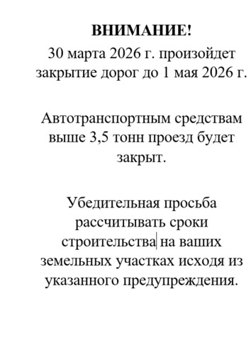 Убедительная просьба рассчитывать сроки строительства на ваших земельных участках исходя из указанного предупреждения.